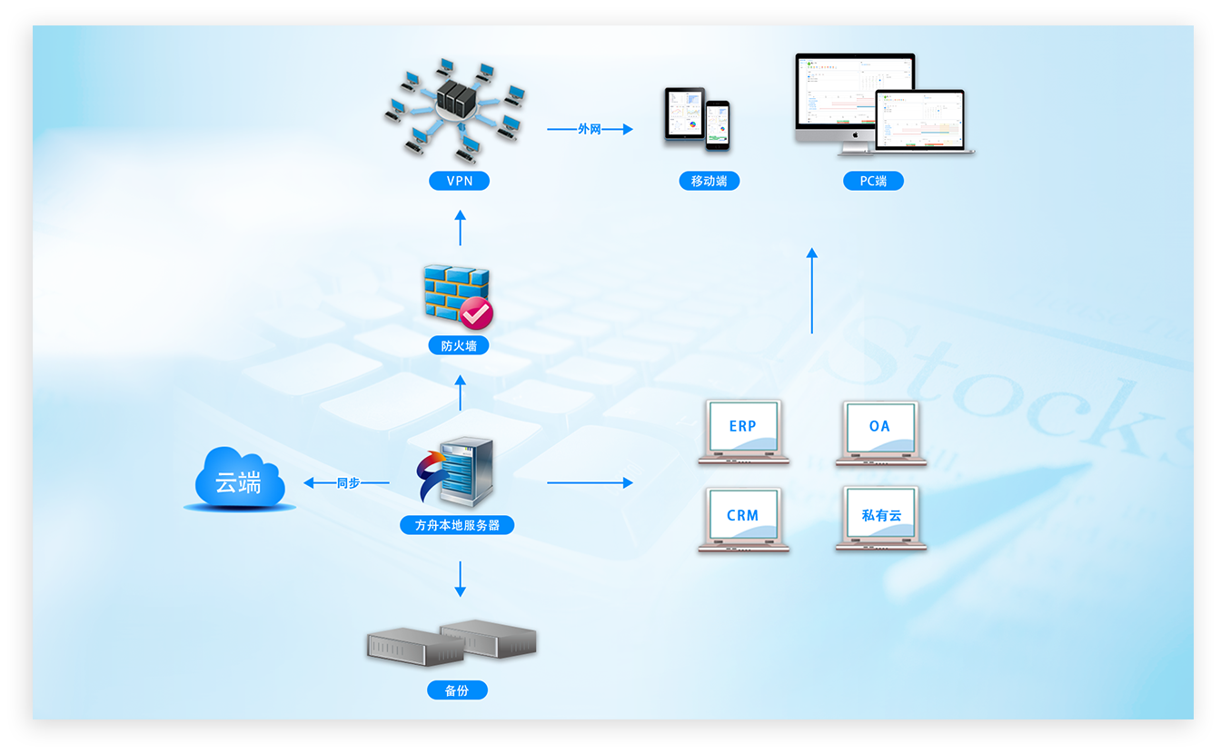 服务型企业(客户服务、开发、设计类)经常会与供应链下探到渠道及客户一起协同作业,共同打造产品、解决问题,常用管理方式都是用微信QQ钉钉建立讨论群,然后发邮件,使用各种云盘传文件,而方舟云单点登录管理系统可以使这些团队在一起办公,无论是建立目标、任务还是文件与进程管理,都如同一个团队一样,并且可以各自对数据进行归档分析。